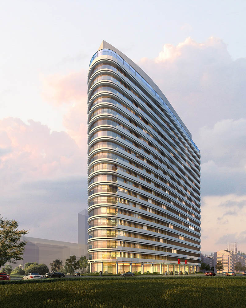 建筑高度为78.6米,地上19层,地下2层,主体结构形式为框剪结构。