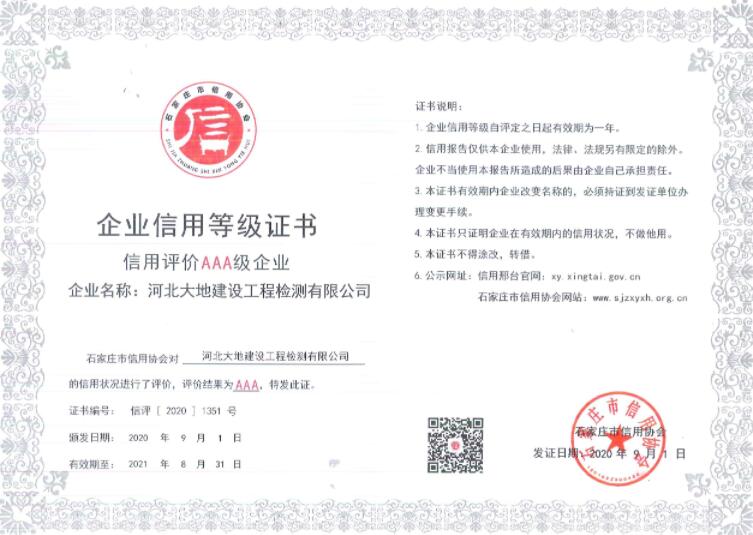 检测信用AAA等级