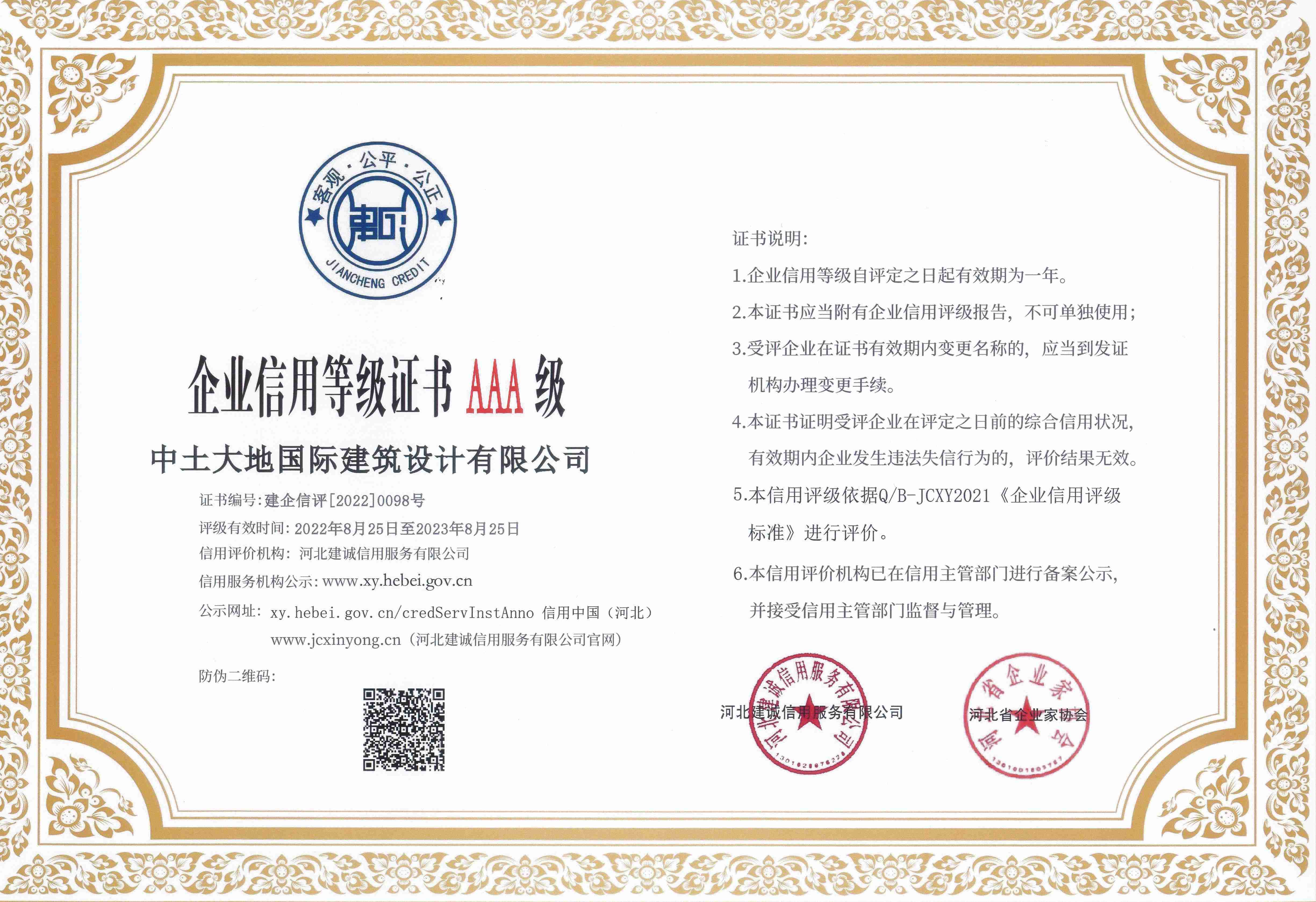 2022年度企业家-协会信用评价3A证书