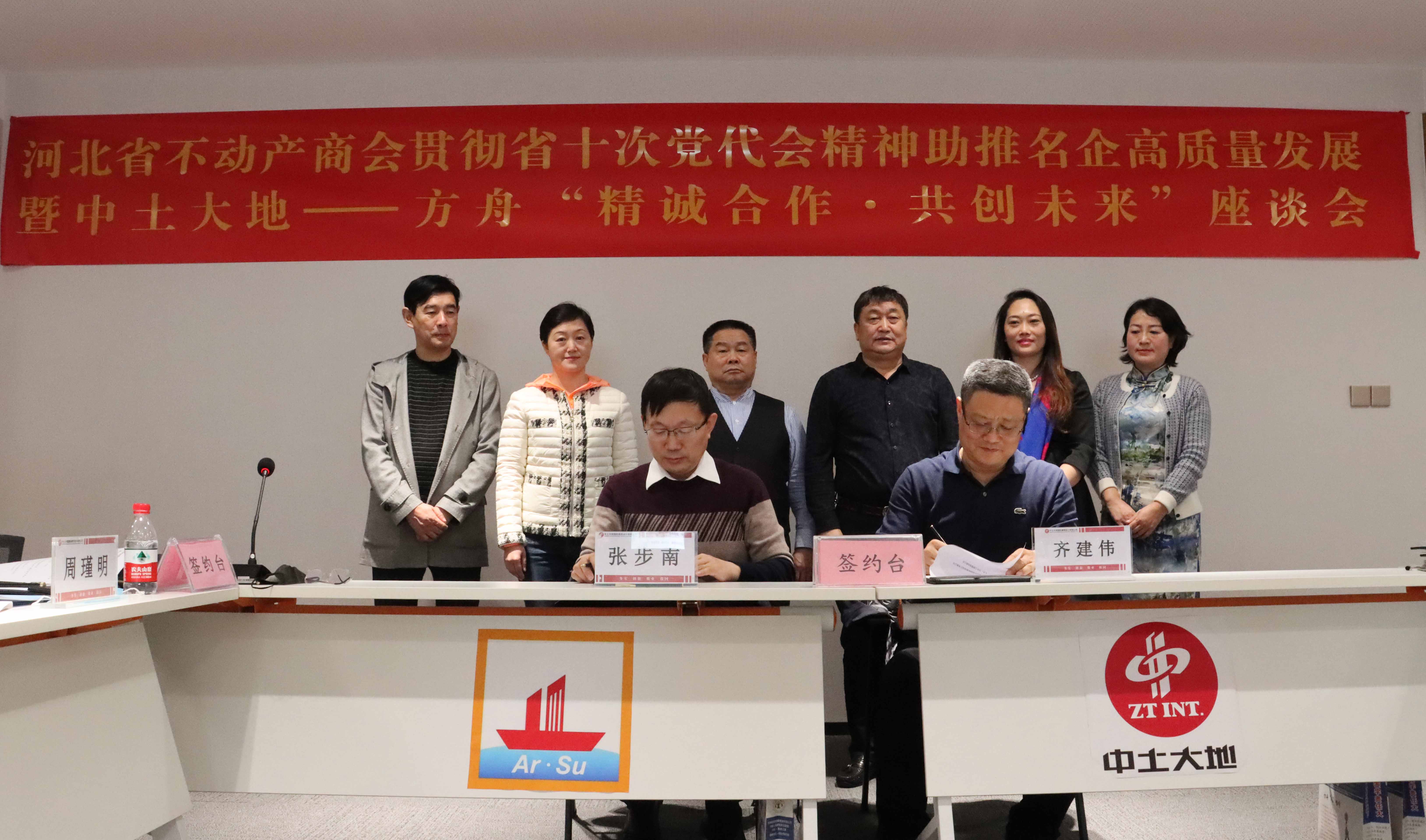 中土大地与方舟皆成立于1997年,多年来,紧紧跟随党和国家的发展步调,“志不改、道不变”,深耕河北、面向全国,基于双方开展长期良好合作关系的意向,在河北省不动产商会的大力支持与推动下,中土大地与方舟正式签署战略合作协议,秉持“包容互鉴·共建共享”的理念,建立“精诚合作·共创未来”的战略合作伙伴关系。
