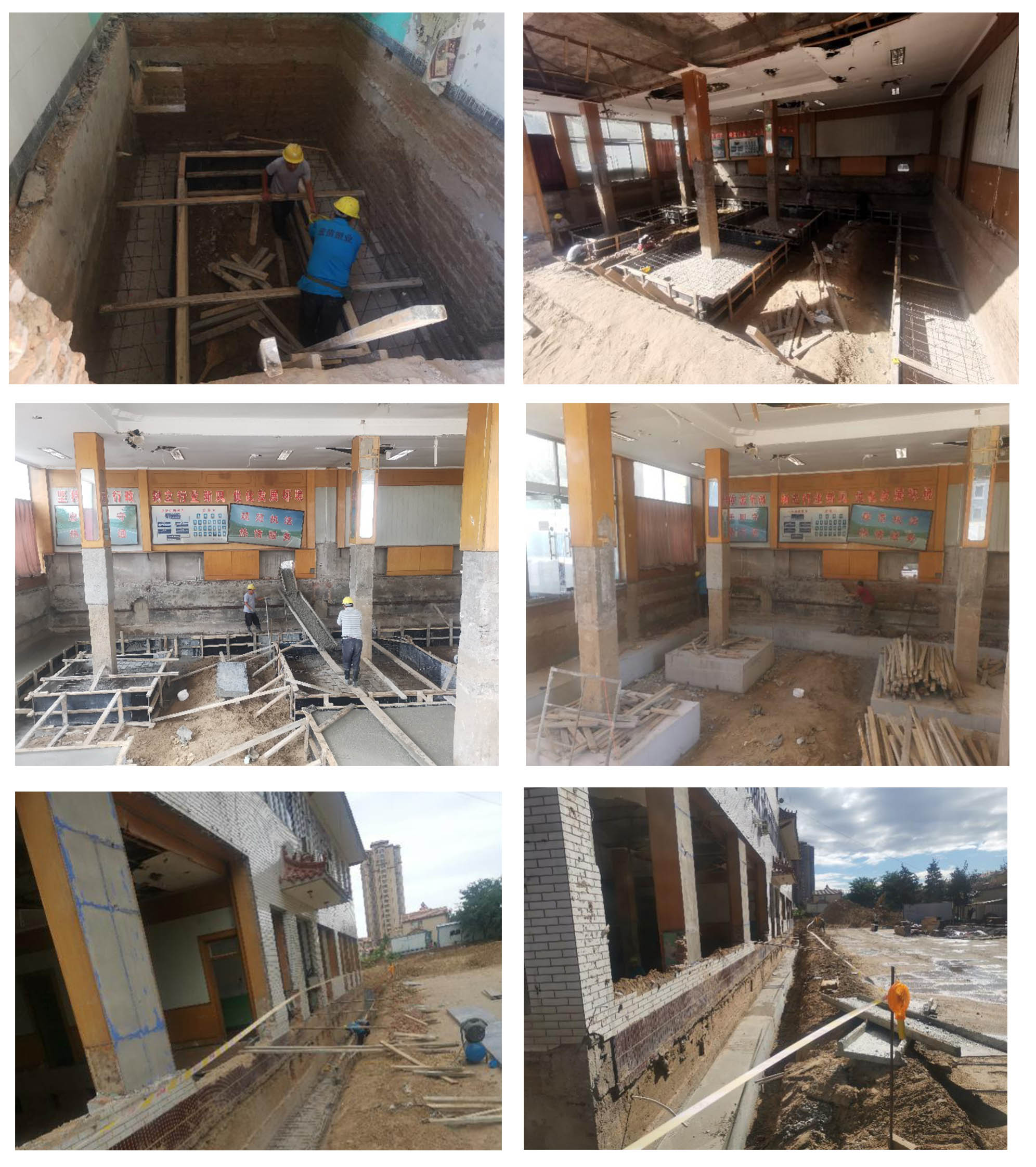 依据设计方案我们首先对基础采取加大截面的方式加固处理,提高基础承载力;