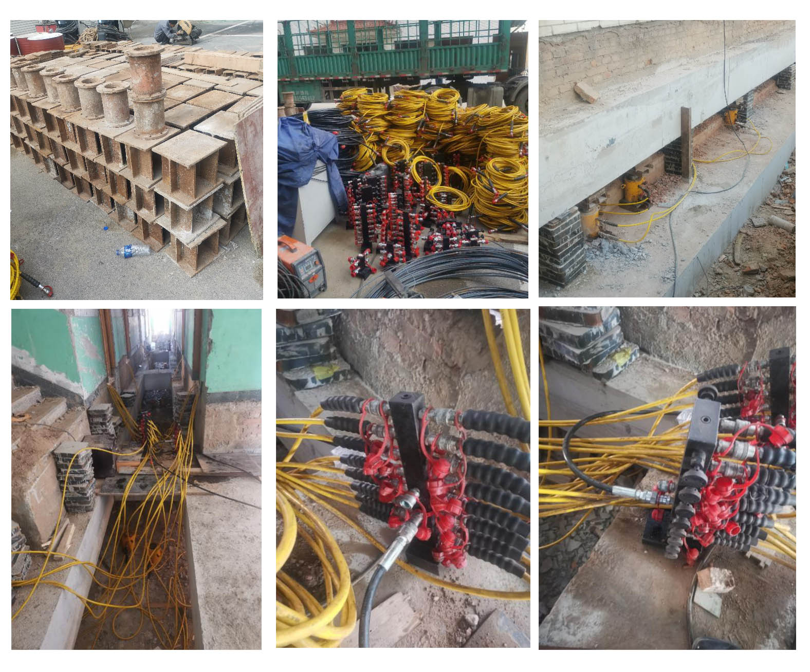 托顶体系完成后,安装顶升设备系统,系统包括千斤顶、连接油管、分配器、高压油泵、调控阀件、防护措施等。千斤顶额定总顶力安全系数应大于2。