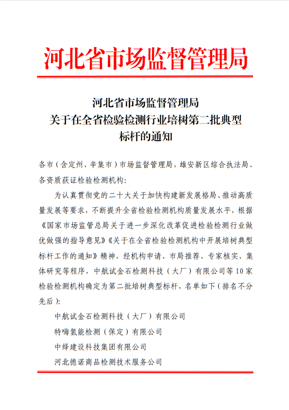 近日,省市场监管局公布了全省检验检测行业第二批培树典型标杆名单,中绎集团榜上有名,荣获培树典型标杆企业荣誉称号。