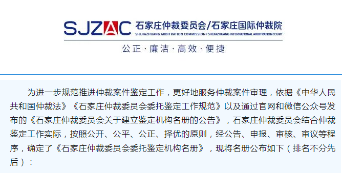 2023年12月6日,石家庄仲裁委员会发布了《石家庄仲裁委员会委托鉴定机构名册》,我公司成功入选工程质量类委托鉴定机构。