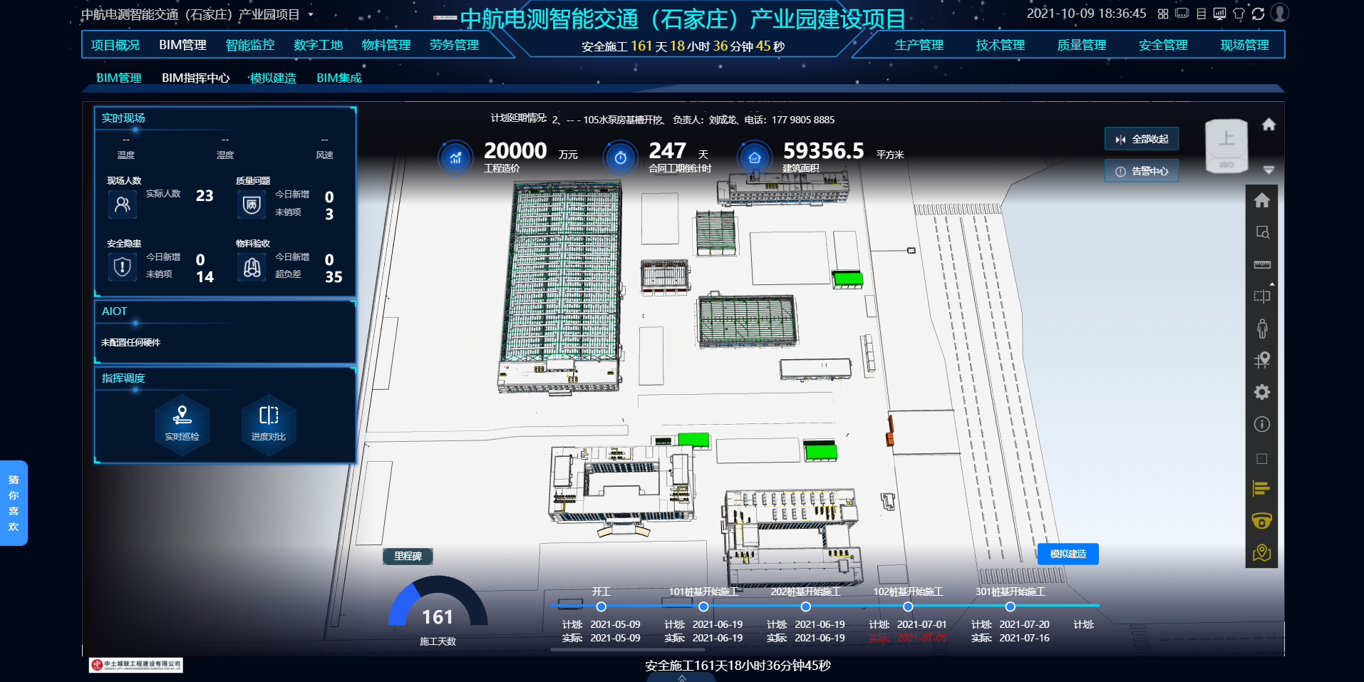10月10日,全市2021四项目前期BIM团队对该项目进行了建造全过程模拟,提前确定施工部署及验证其实施的可行性,最大限度将进度、质量、安全及成本控制在可控范围内,有效规避风险,进一步提高服务质量和项目品质,并搭建数字化协同平台,通过平台打造智慧工地大脑,将项目管理数据的信息实施多端同步,高效实现建筑施工信息化、智能化、可视化,有效提高总承包管理能力。季度项目观摩团走进中航电测智能交通(石家庄)产业园项目,张超超、马宇骏、詹晓阳、李雪荣、张业等领导和各县(市、区)党政主要负责同志、市直有关部门负责同志参加。