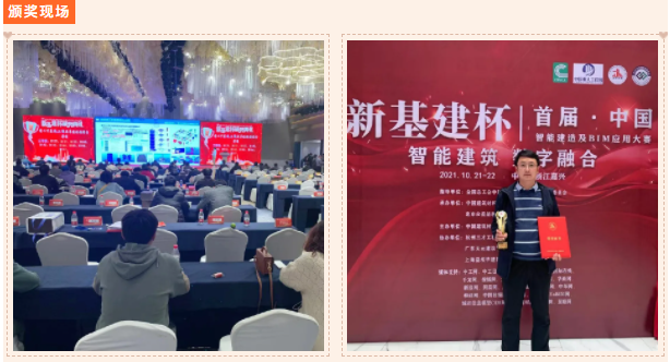 会议期间对BIM应用大赛获奖作品颁发证书与奖杯,我公司凭借《中航电测智能交通产业园建设项目与BIM施工应用》方案喜获优秀奖,本次大赛历时四个月,全国共有1308个项目报名参赛。