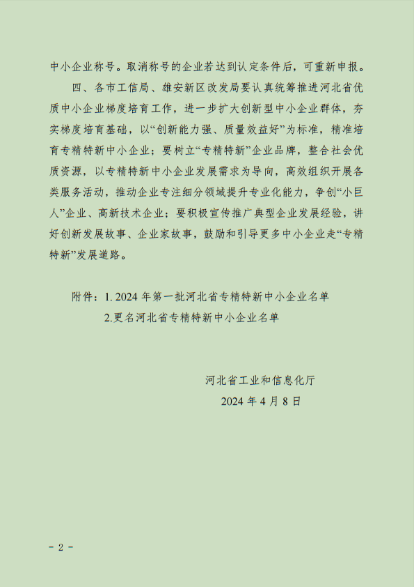 近日,中绎集团荣获河北省工业和信息化厅授予的“河北省专精特新中小企业”荣誉称号。